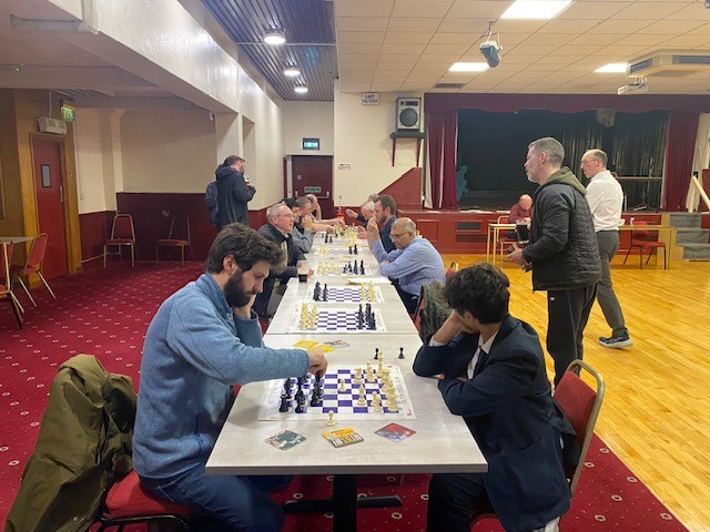 Alan Lloyd lost both games on board 1. Mike Hollier was 1-1 on board 2, as was Rory Lynas on four. Tayeb Kazemi won both games on board 3 to square the scores.